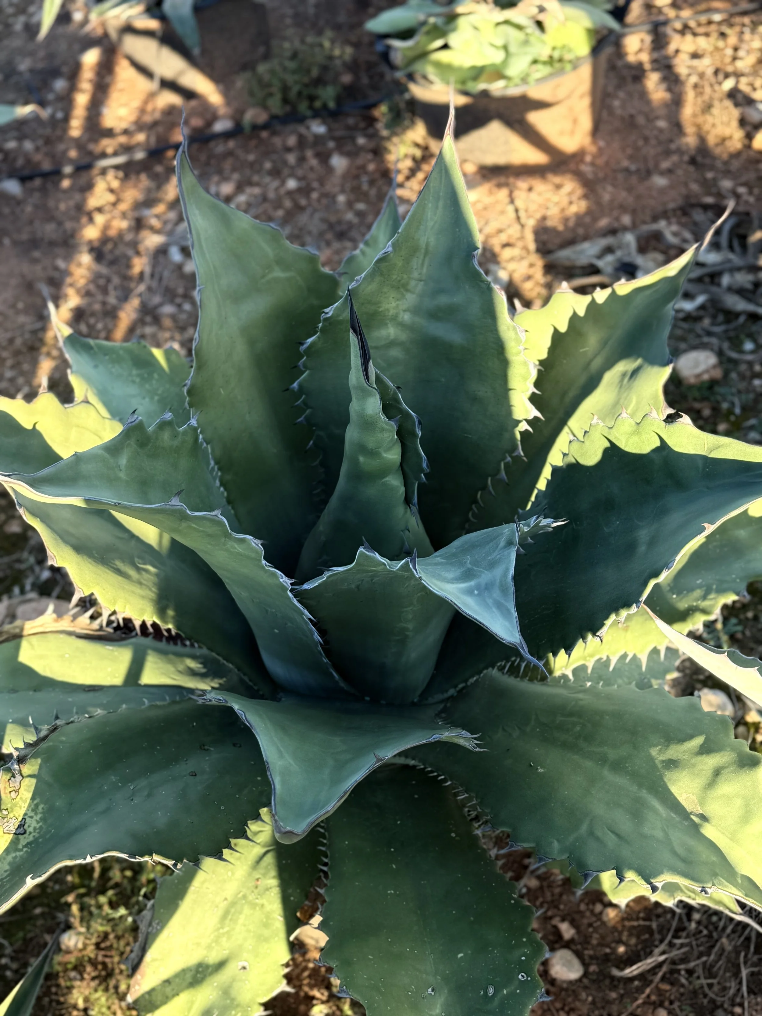 Condiciones ideales: – Luz: Pleno sol (Alta exposición) – Riego: Escaso a moderado; muy resistente a la sequía una vez establecido – Sustrato: Profundo y bien drenado, aunque tolera suelos más arcillosos que otros agaves