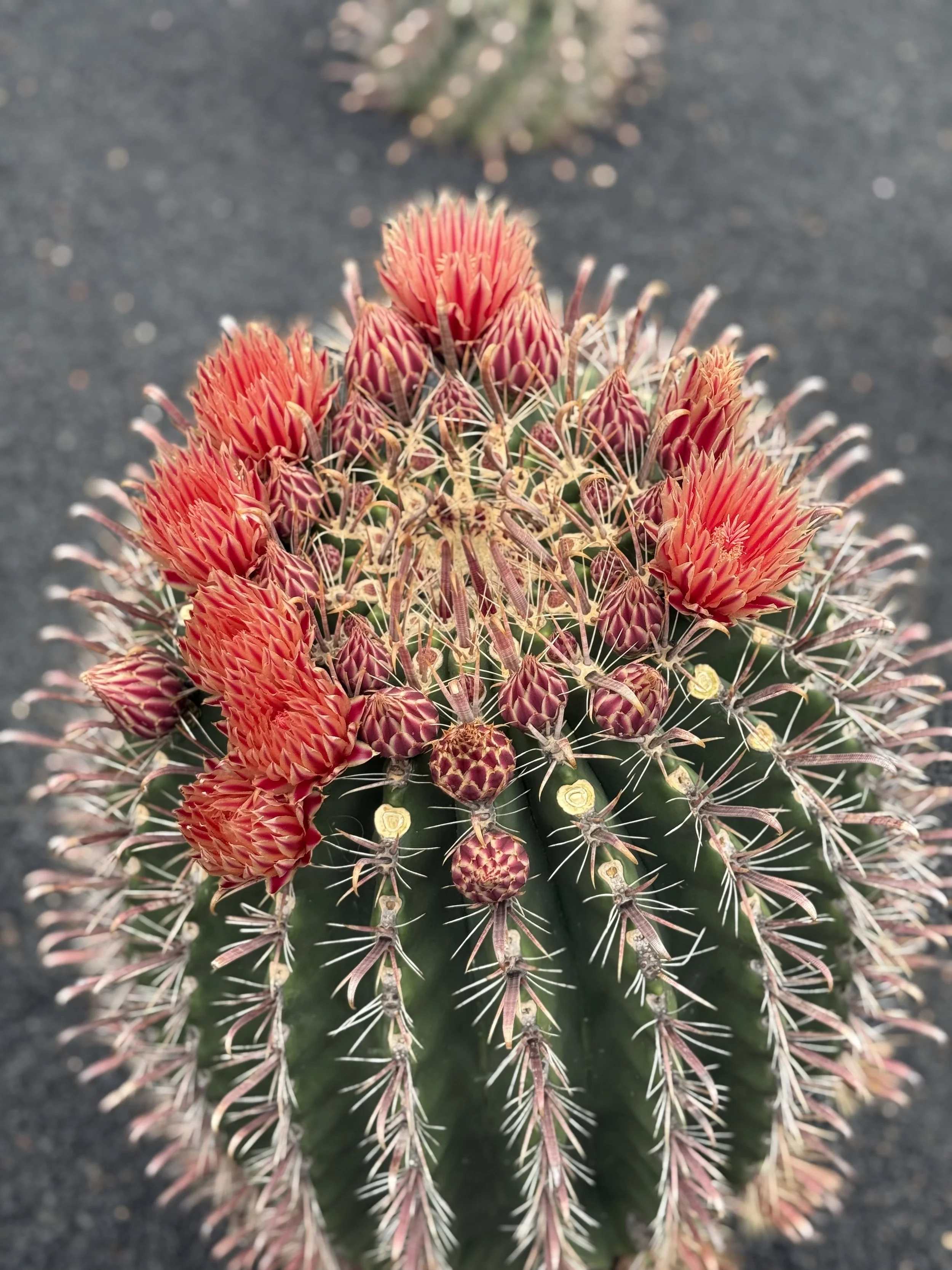 Condiciones ideales: – Luz: Alta exposición (Pleno sol; indispensable para el color rojo de las espinas) – Riego:Espaciado; dejar secar el sustrato por completo. Sensible al exceso de riego en la base – Sustrato: Suelo muy bien drenado, predominantemente mineral (grava, arena volcánica o caliza)